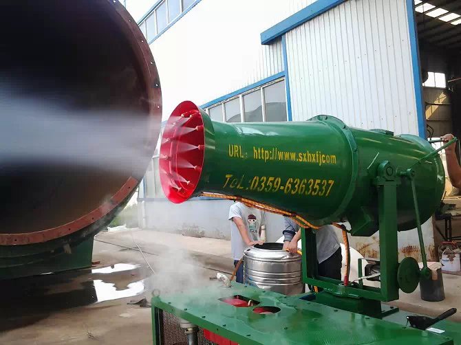 功力強(qiáng)、射程遠(yuǎn)、覆蓋范圍廣、可實(shí)現(xiàn)精量噴霧;工作效率高、噴霧速度快;對容易引起塵埃的堆場噴水除塵時,噴出的霧粒細(xì)小、與飄起的塵埃接觸時,形成一種潮濕霧狀體,能快速將塵埃抑制降沉。